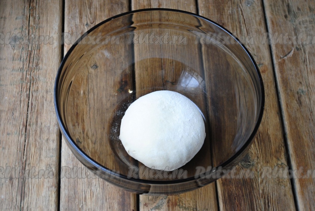 Выложить тесто в миску, накрыть полотенцем и оставить на 10-15 минут, чтобы тесто "отдохнуло".