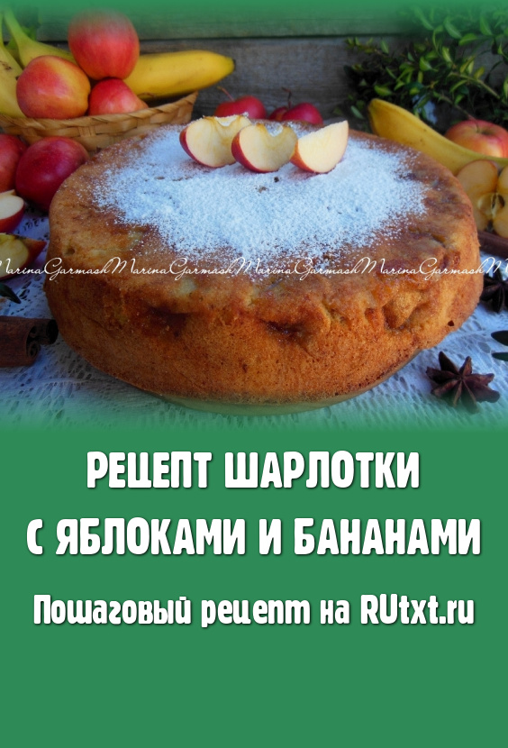 Аппетитная домашняя шарлотка с яблоками и бананами, испеченная по этому рецепту, очень понравится как детям, так и взрослым. Нежный, в меру сладкий пирог не оставит никакого равнодушным. Тонкий вкус бананов и аромат сочных сладких яблок прекрасно дополняют друг друга, делая эту простую выпечку восхитительной. Перед такой шарлоткой устоять невозможно, попробуйте!