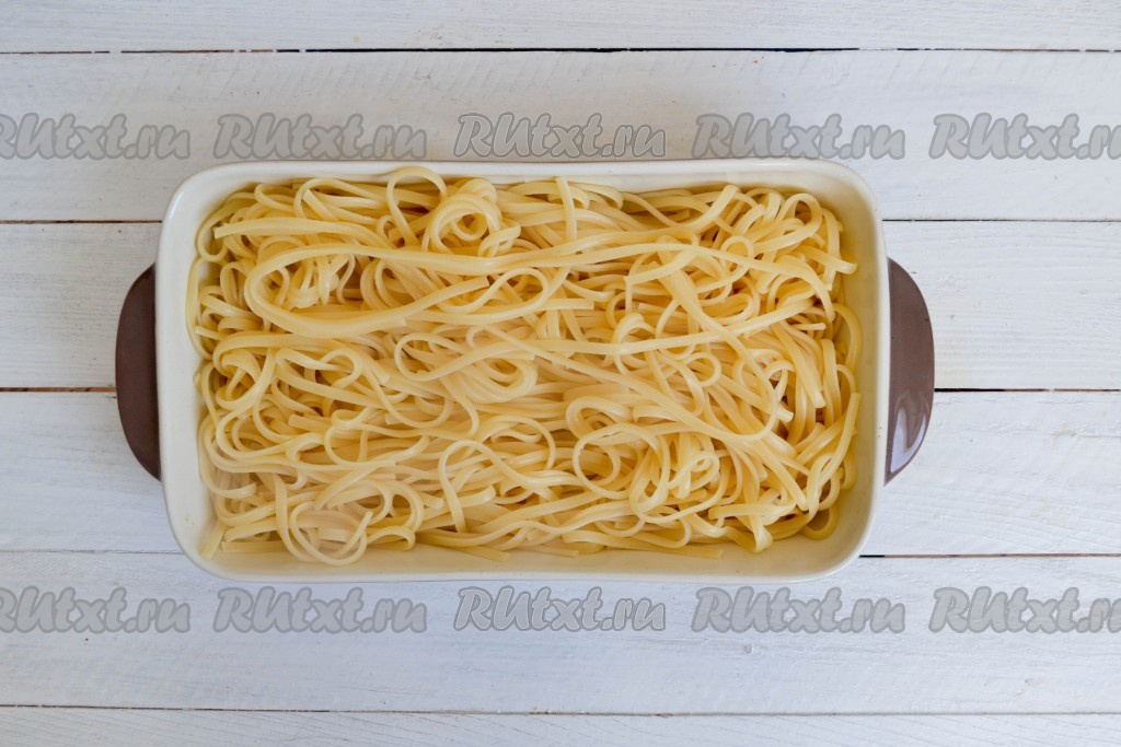Когда вся лишняя жидкость стечет, переложить макароны в форму для запекания (лучше использовать керамическую форму).