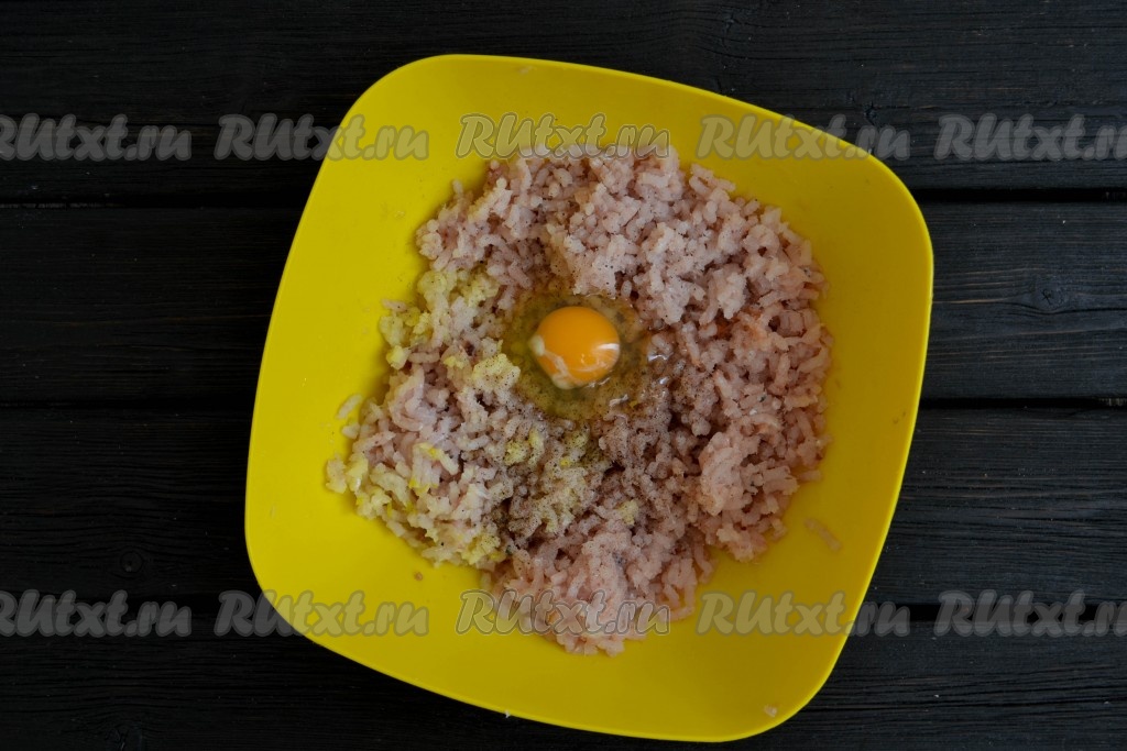 Добавить к фаршу куриное яйцо.