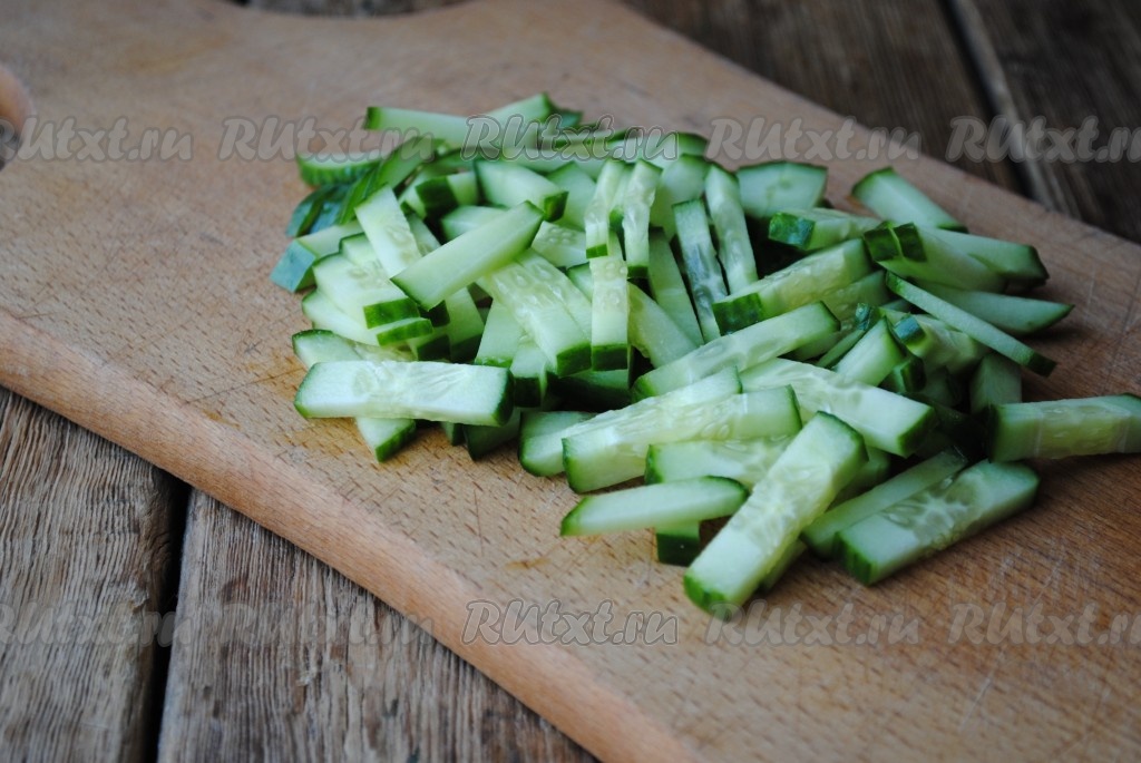 Картофель вымыть и отварить в кожуре в подсоленной воде до готовности (в течение 25-30 минут, готовая картошка будет легко прокалываться вилкой), затем остудить, очистить, нарезать на брусочки.