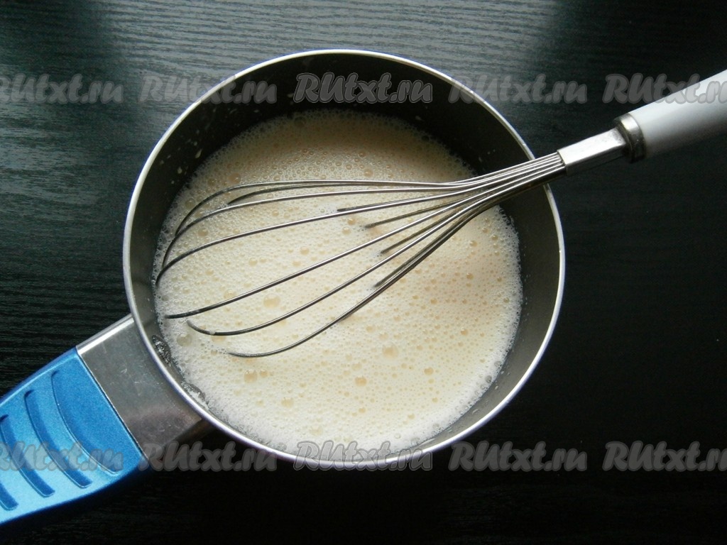 Хорошенько разболтать яйца со сгущенкой венчиком до однородного состояния.