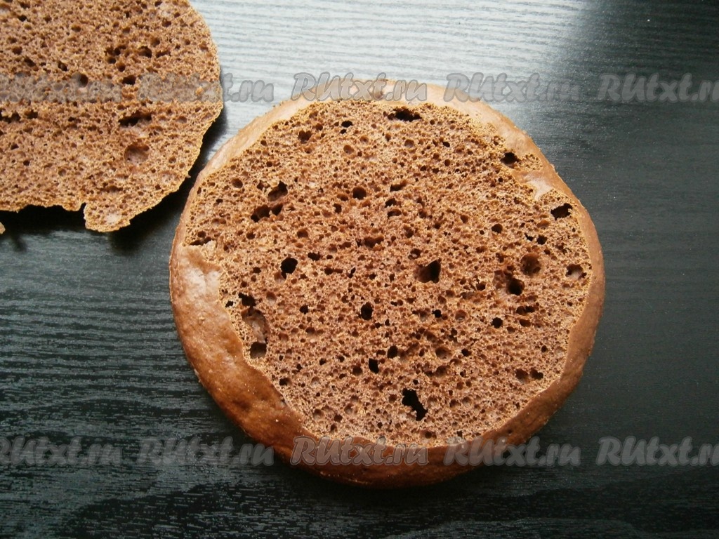 Коржи получаются с "шапочкой", поэтому ее нужно срезать.