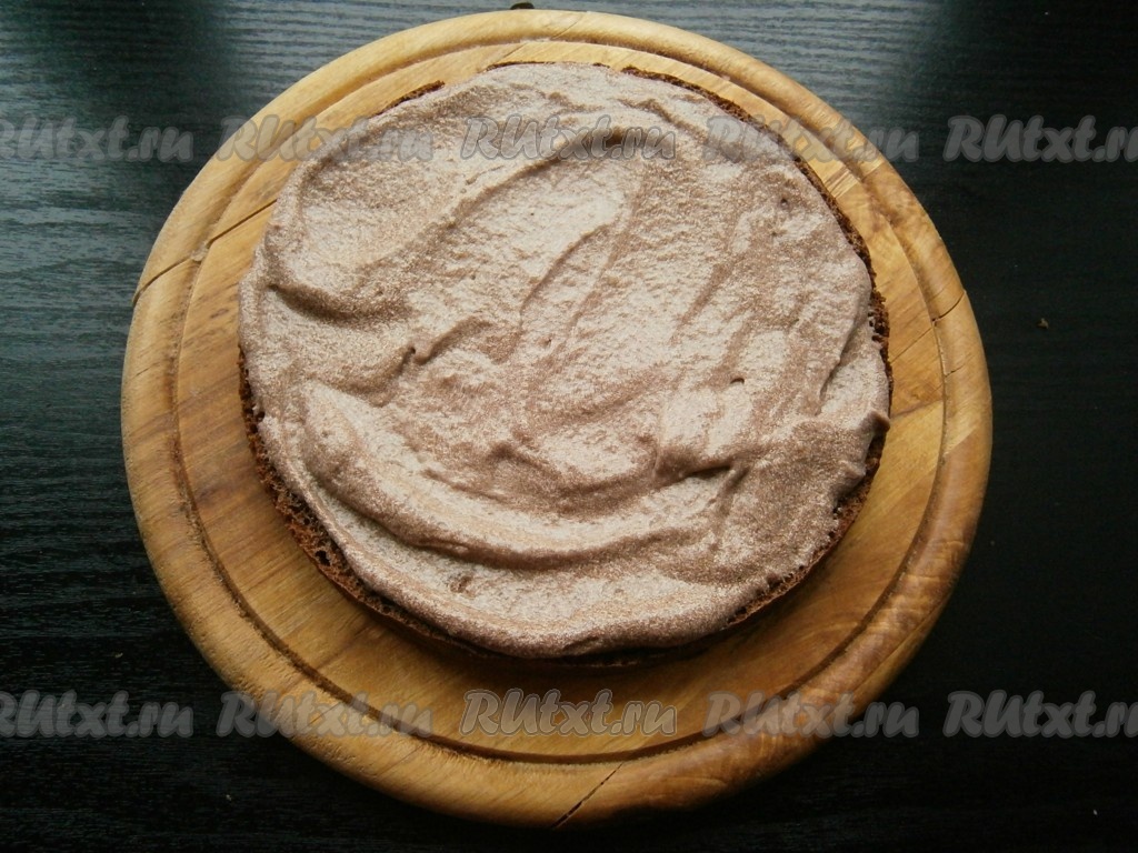 Верх и бока также покрыть кремом и выровнять им тортик.