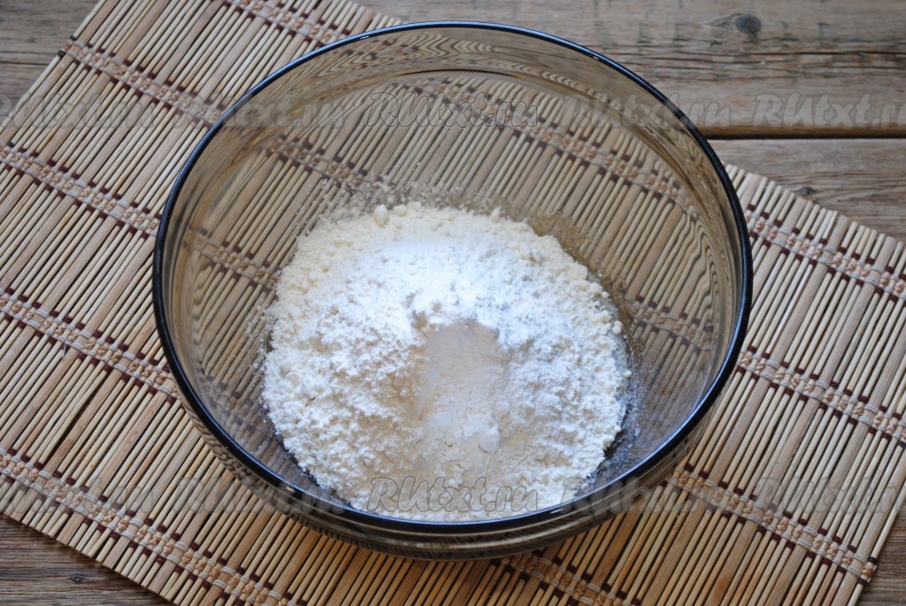 Просеянную муку с разрыхлителем всыпать к получившейся массе.