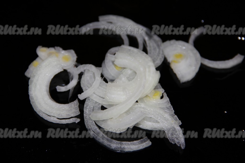 Лук нарезаем полукольцами.