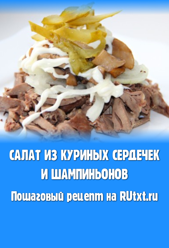 Люблю всевозможные салаты, в состав которых входит минимум продуктов. Мне они кажутся наиболее вкусными. Над ними можно поэкспериментировать, меняя входящие в состав ингредиенты. Сегодня я предлагаю попробовать приготовить салат из куриных сердечек и шампиньонов.