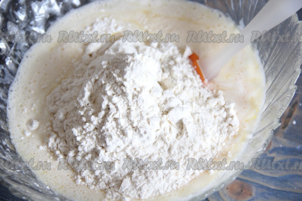 Всыпать муку и разрыхлитель.