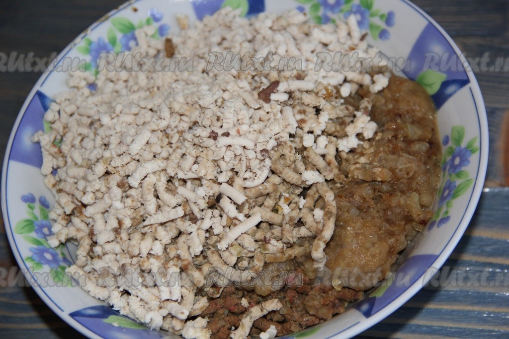 Мелко нарезать очищенный лук и обжарить до золотистого цвета, помешивая, на сковороде, разогретой с добавлением растительного масла.
