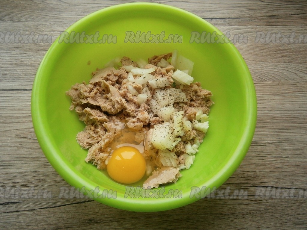 Сюда же добавить яйцо, соль (если соли недостаточно в фарше), свежемолотый чёрный перец.