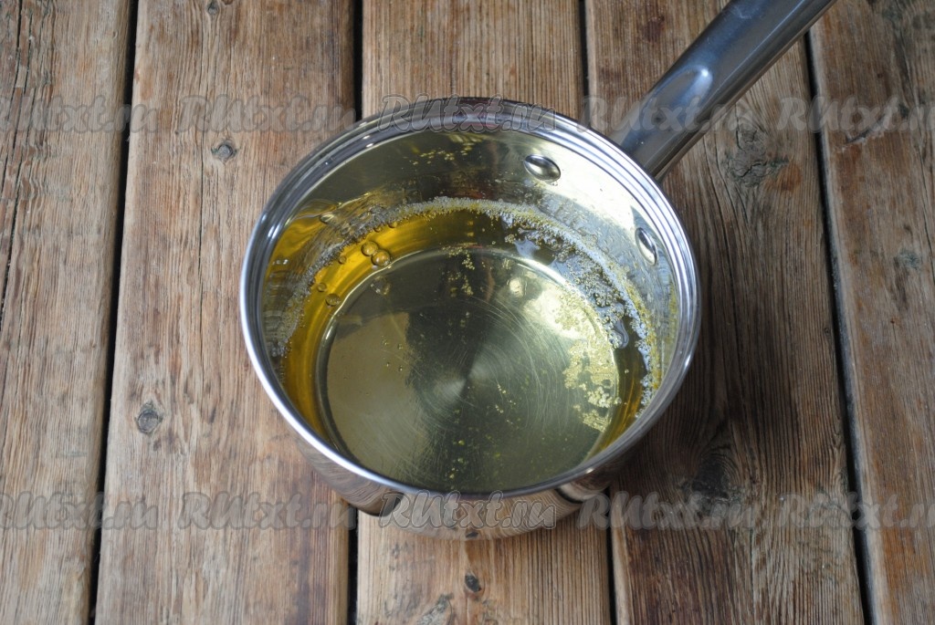 Для приготовления сиропа в небольшую кастрюлю или сотейник налить воду, добавить сахар и мёд. Отправить на огонь и довести до кипения. Затем уваривать сироп на медленном огне 5 минут.