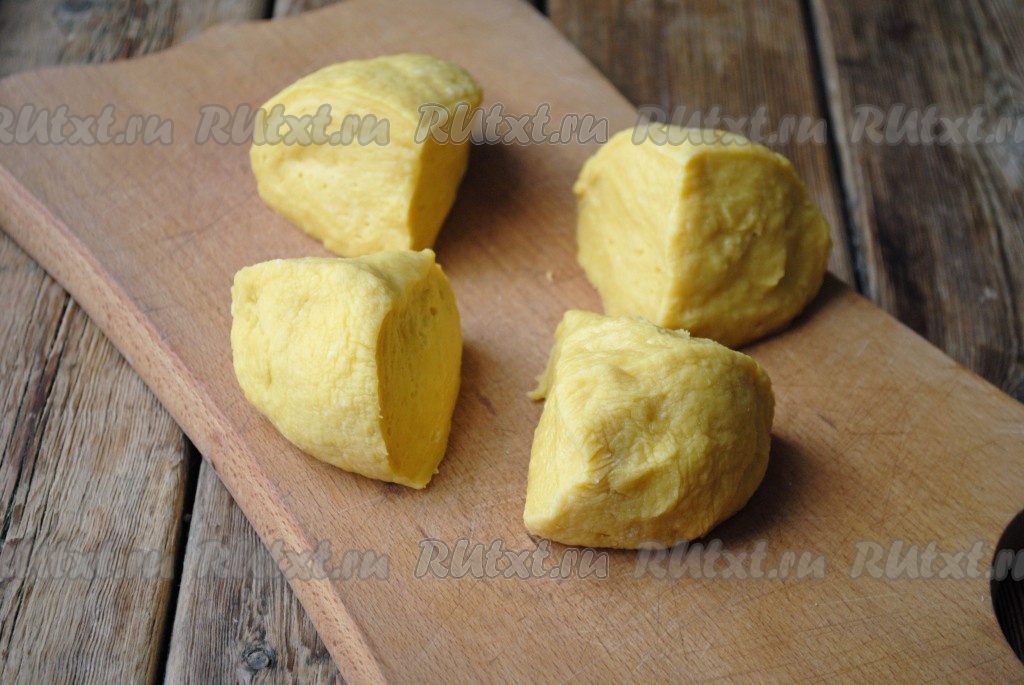 Разделить тесто на 4-6 частей.