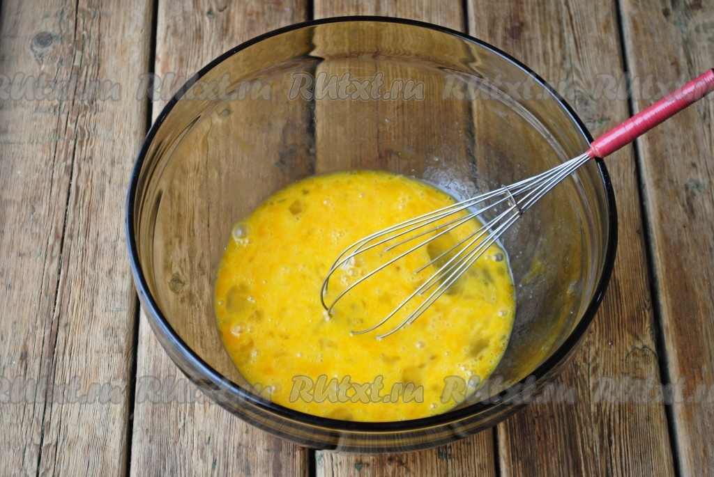 С помощью венчика размешать яичную смесь до однородной массы.