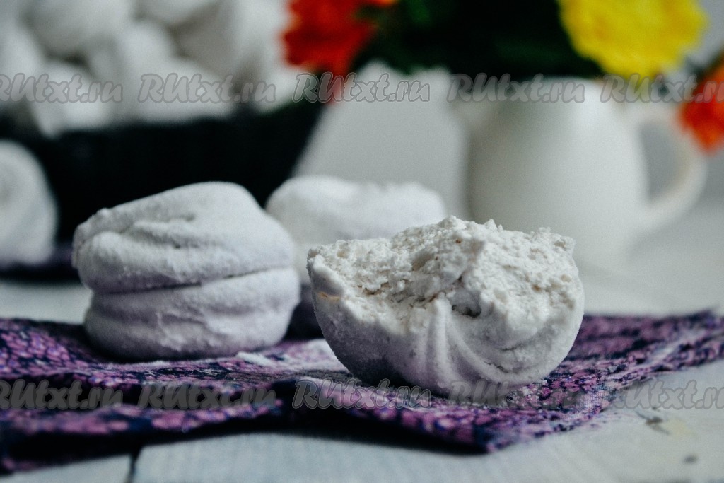 Подсушенные половинки зефира соединить между собой и присыпать сахарной пудрой.