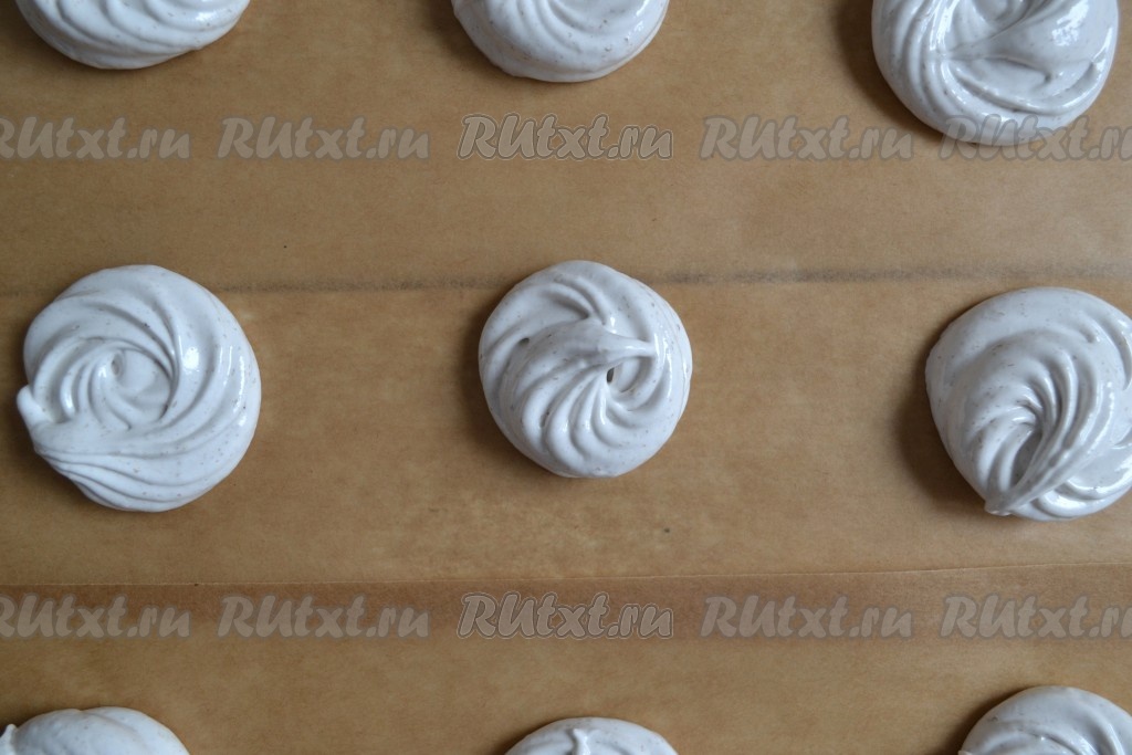 Агар-агар начинает застывать уже при 40 градусах, поэтому наполнять кондитерский мешок и отсаживать на пергамент банановый зефир нужно очень быстро. Затем отправить зефир сушиться на ночь в сухое и теплое помещение.