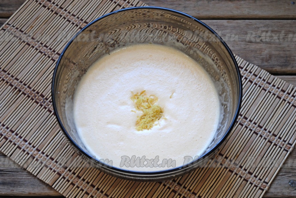 Для аромата добавить в получившуюся массу лимонную цедру, перемешать. Цедру с лимона нужно снимать аккуратно, не затрагивая белую часть (если снять цедру с белой частью - она будет горчить).