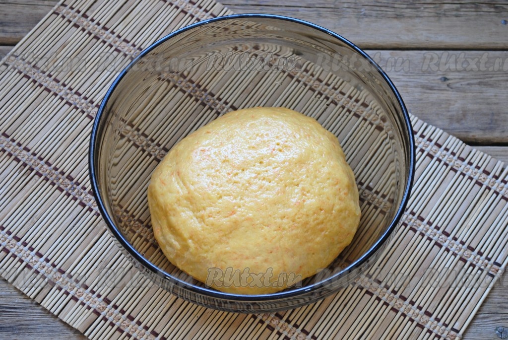 Добавляя понемногу муку, учитывайте, что тесто должно получиться мягким, липковатым. Чтобы с тестом было удобно работать, можно смазать руки растительным маслом. Замешанное тесто выложить в миску и, накрыв полотенцем, оставить на 1-1,5 часа в тепле для подъёма.
