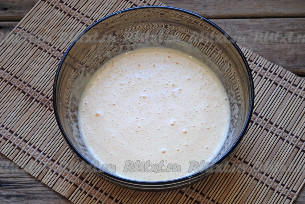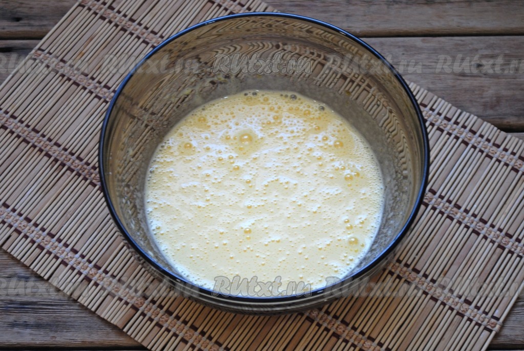 Взбить миксером яйца с сахаром до однородности (взбивать минут 6-7). Яичная масса в процессе взбивания должна увеличиться в объёме и побелеть.