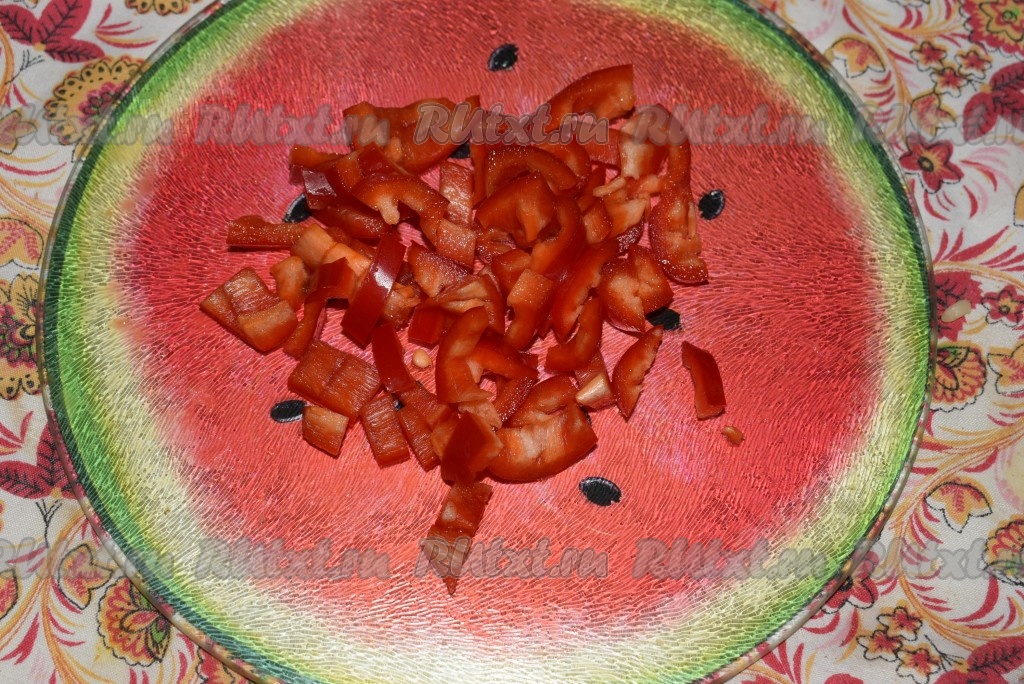 Болгарский перец нарезаем на полоски.
