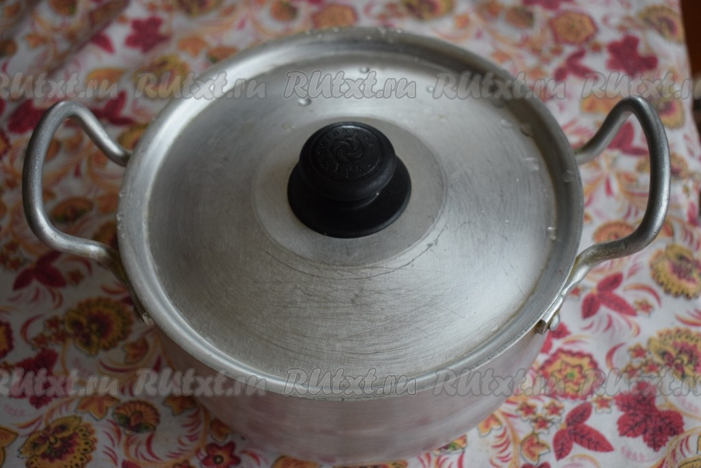 Накрываем кастрюльку крышкой и оставляем соевое мясо набухать, примерно, на 20-30 минут.