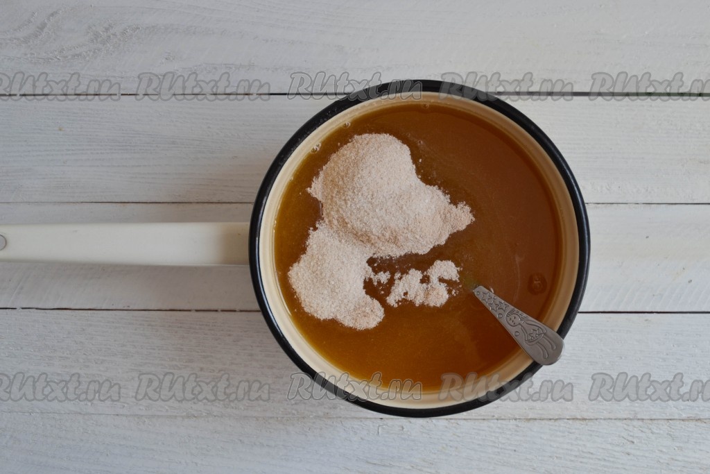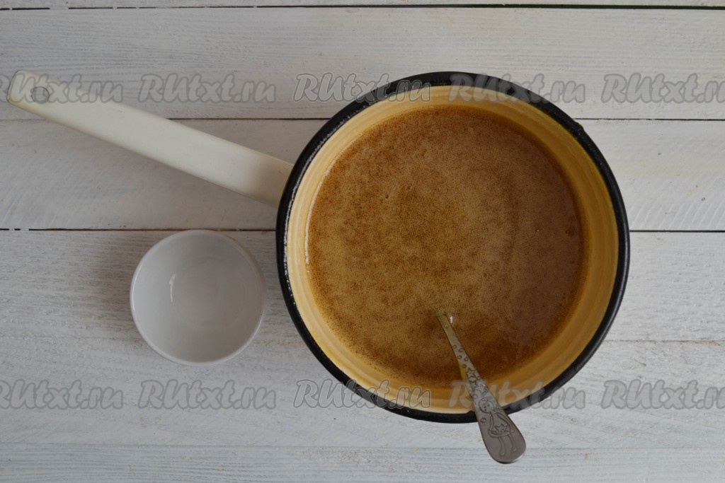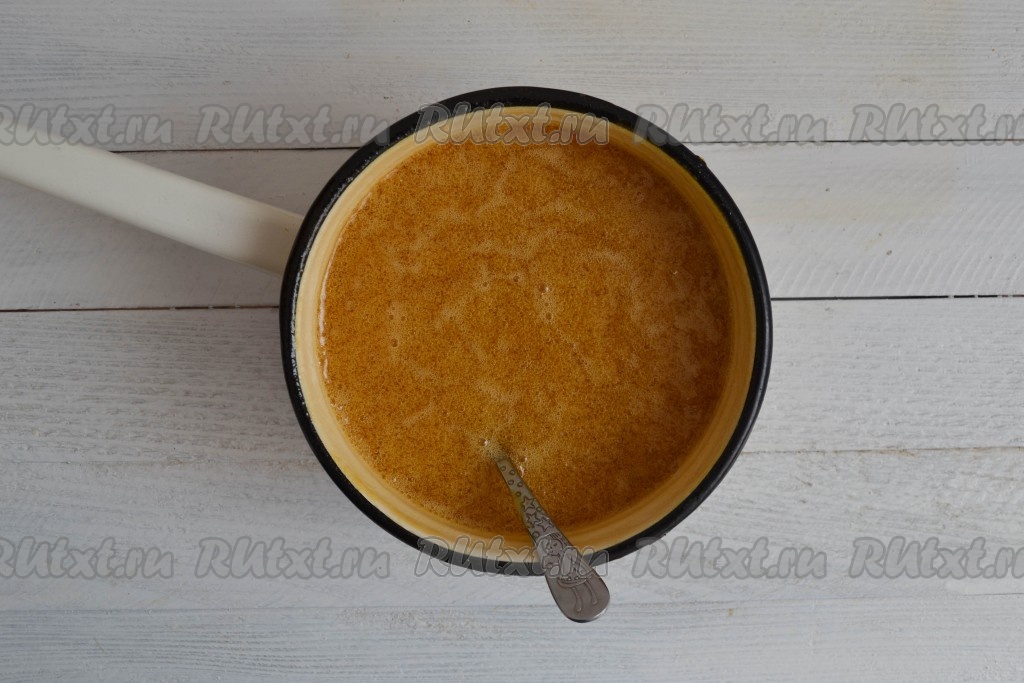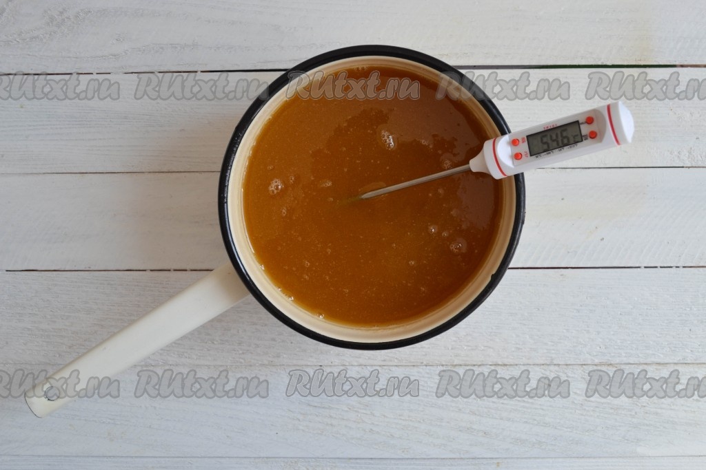Довести массу до температуры 110 градусов. С момента закипания масса будет сильно увеличиваться в объеме и бурлить, поэтому сотейник или кастрюля должны быть объемом не менее 1,5-2 литров.