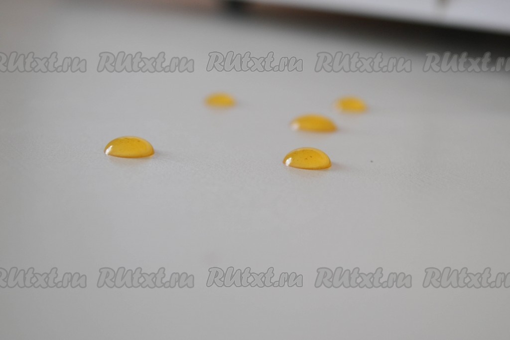 Уваренный сироп, из которого по максимуму выпарили жидкость, прекрасно держит форму и не растекается. Если оставить каплю сиропа на поверхности - она так и останется, а за считанные секунды и вовсе загустеет, станет плотным шариком.