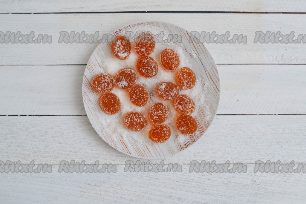 Отправить домашний мармелад в холодильник минимум на 8 часов. Затем хорошо застывший мармелад вынуть из формы и хорошенько обвалять в сахаре. Хранить мармелад лучше в холодильнике в плотно закрытом контейнере.