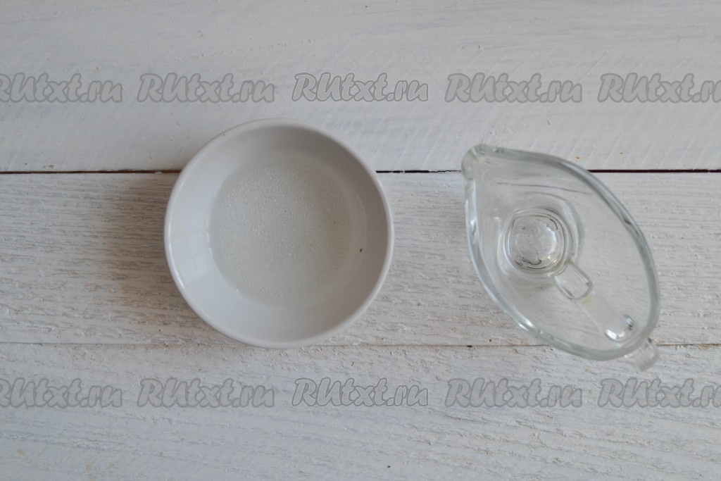 В отдельной ёмкость всыпать лимонную кислоту, залить водой и размешать до полного растворения.