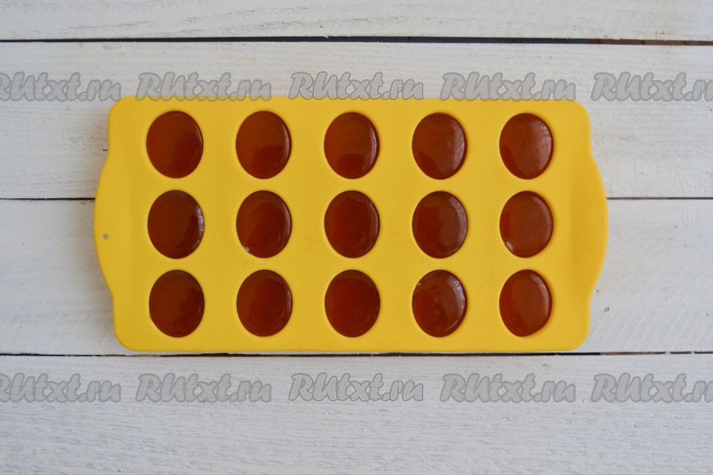 Заполнить мармеладной массой ячейки силиконовой формы. Смазывать их ничем не нужно.