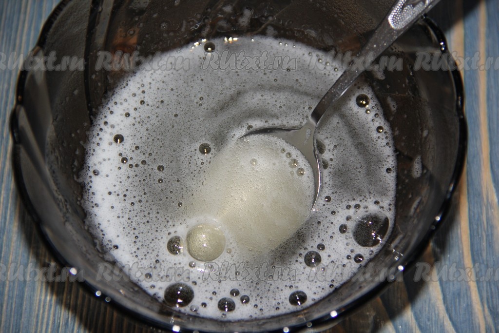 Набухший желатин прогреть на максимальной мощности микроволновки до полного растворения (но не кипятить!). Желатин полностью растворяется в микроволновке за 30-40 секунд, в течение этого времени каждые 10 секунд я достаю желатин, перемешиваю и снова отправляю в микроволновку.