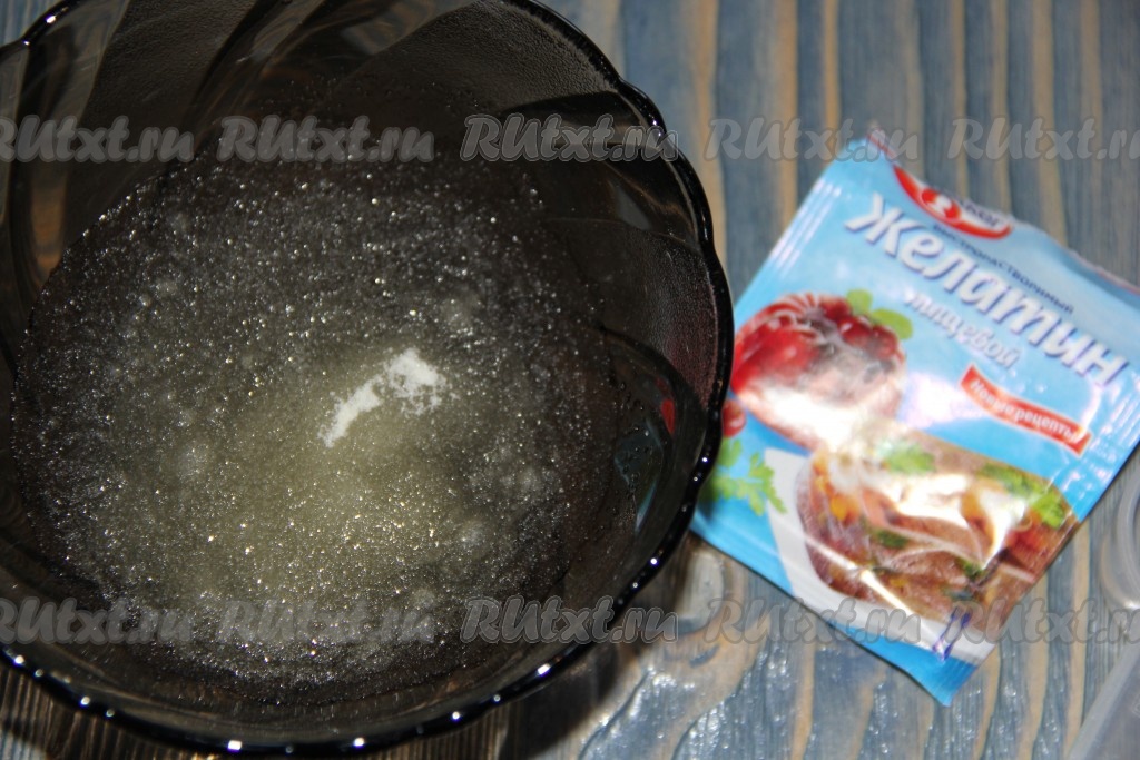 Залить желатин холодной водой и оставить набухать минут на 15 минут.