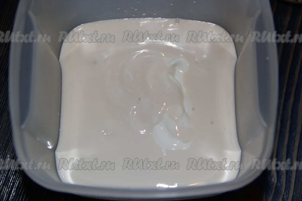 Ряженку соединить со сметаной, перемешать.