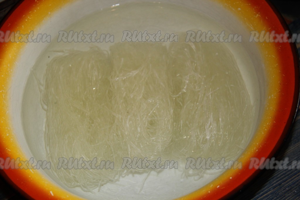 Полностью залить фунчозу кипящей водой и оставить на 10 минут.