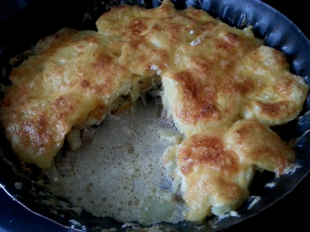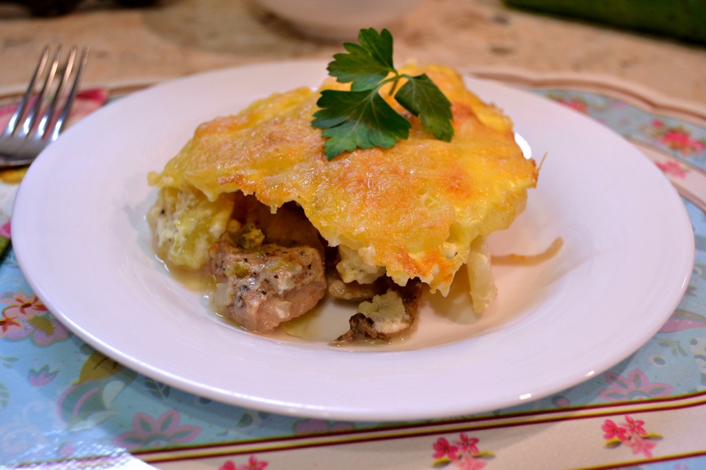 Отправить блюдо в разогретую до 190 градусов духовку на 45-50 минут. Вкуснейшее мясо по-французски, приготовленное с картофелем и грибами, подать к столу в горячем виде.