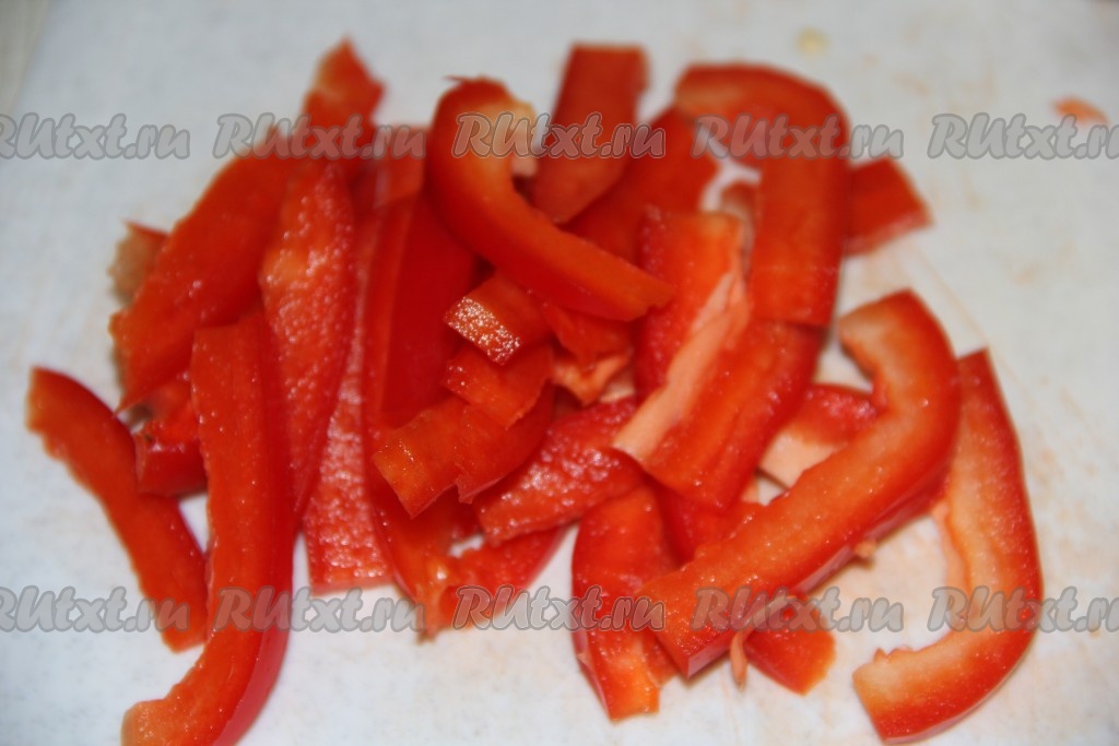 Перец вымыть, удалить плодоножку и нарезать длинными брусочками. Брокколи разобрать на соцветия.