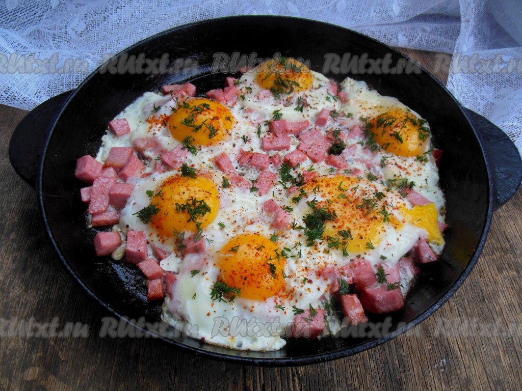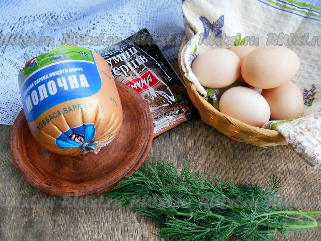 Для приготовления яичницы с колбасой понадобятся вот такие продукты.