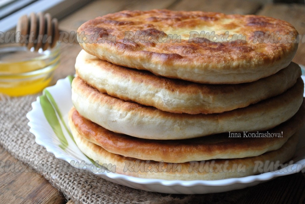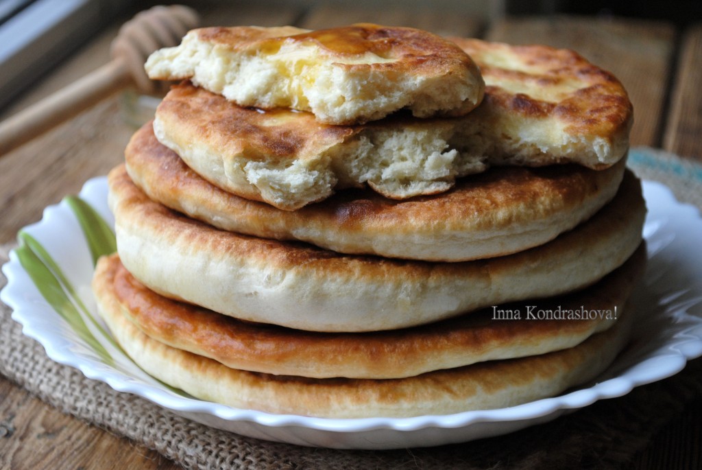 Лепешки отлично сочетаются с мёдом, сметаной или вареньем.