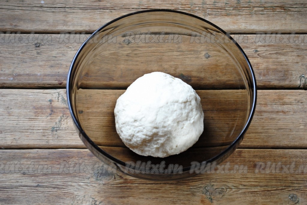 Замесить не липнущее к рукам, плотное тесто. Поместить его в миску, накрыть полотенцем и оставить "отдохнуть" на 30 минут при комнатной температуре.