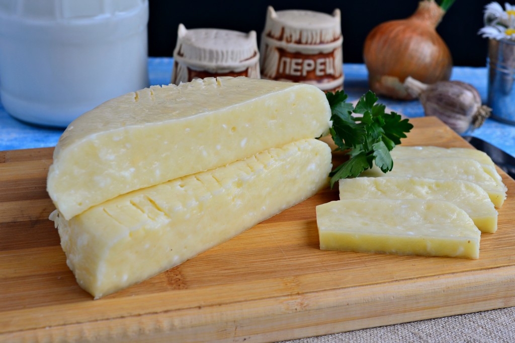 Простой в приготовлении и очень вкусный домашний твердый сыр из творога и молока подать к столу.