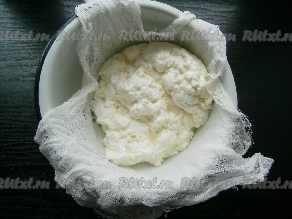 Отцедить сыворотку через 2-3 слоя марли, останется комок мягкого творога.