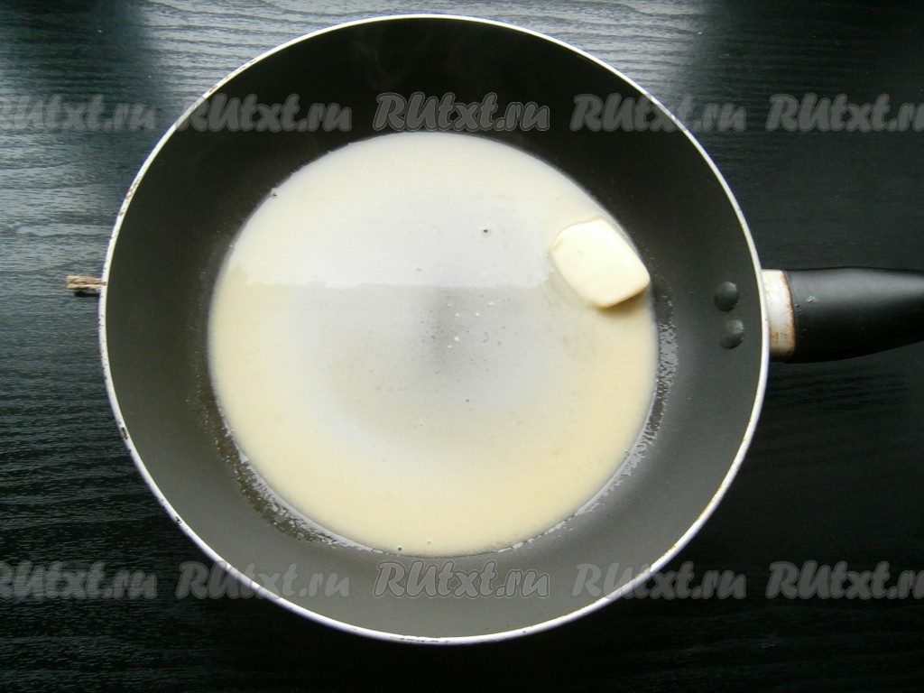 Тем временем, в сковороду поместить сливочное масло и растопить его на небольшом огне.