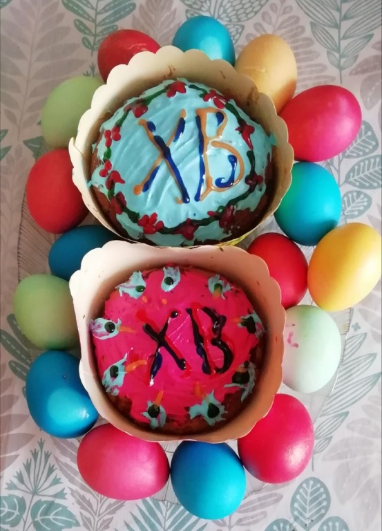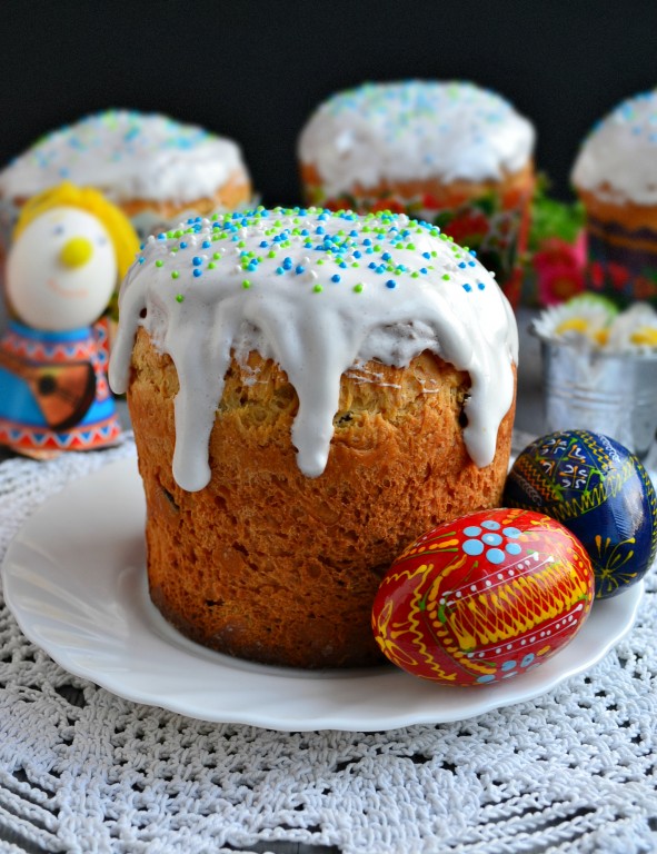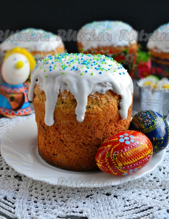 Дать очень ароматным и вкусным пасхальным куличам немного остыть, покрыть любой глазурью (можно белковой глазурью) и украсить присыпкой. После полного остывания бумажные формы можно с куличей оборвать. Оставить куличи для созревания на 10-12 часов.