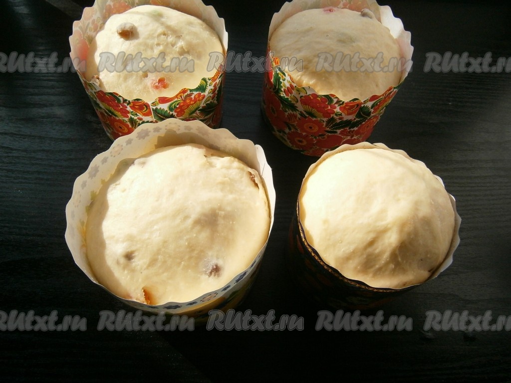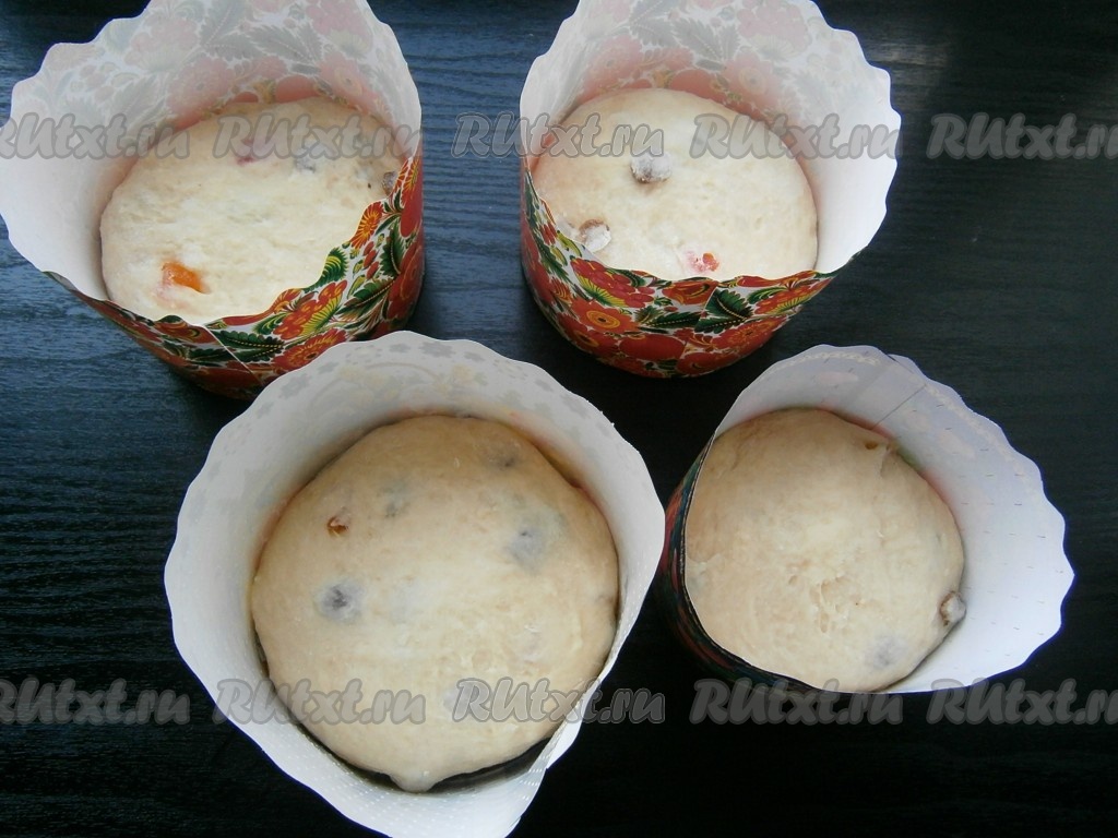 Поместить формочки в теплое место и оставить их для подхода теста на 1 час. Тесто должно хорошо подняться.