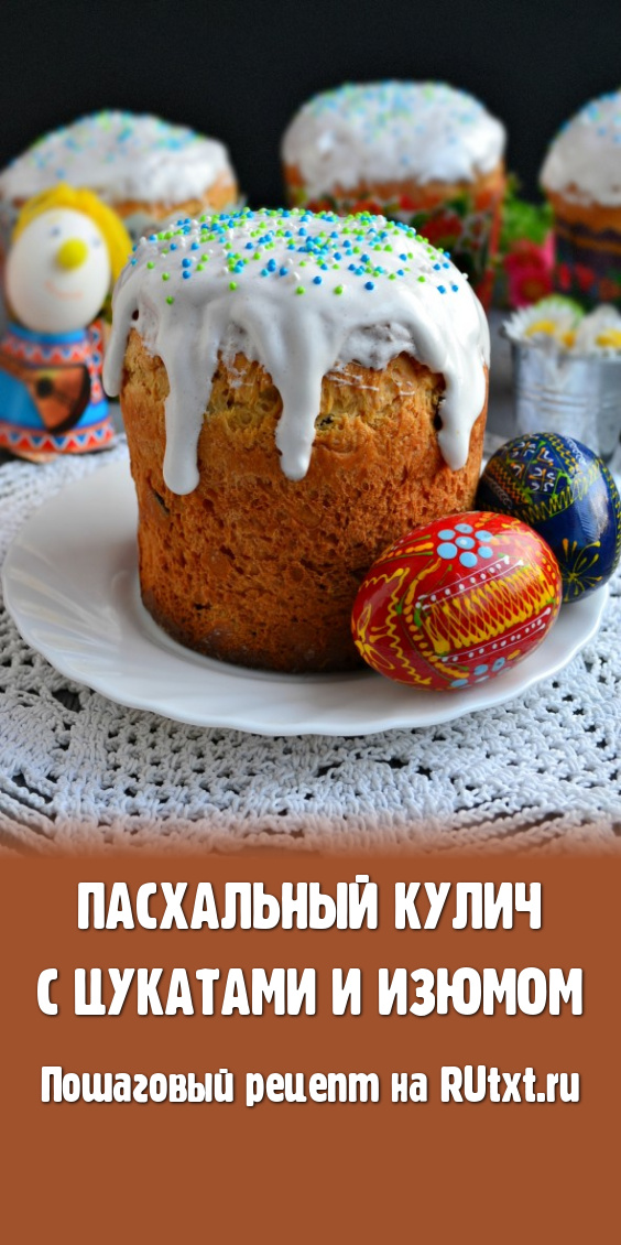 Предлагаю вам попробовать отличный пасхальный кулич, приготовленный с цукатами и изюмом. Готовится он просто, без вымешивания теста, получается сладким, с насыщенным сдобным вкусом, невероятно ароматным. Для выпечки такого кулича идеально подходят бумажные формочки, которые с готовых куличей легко оборвать. Из данного количества продуктов получится 4 кулича весом около 350 грамм.