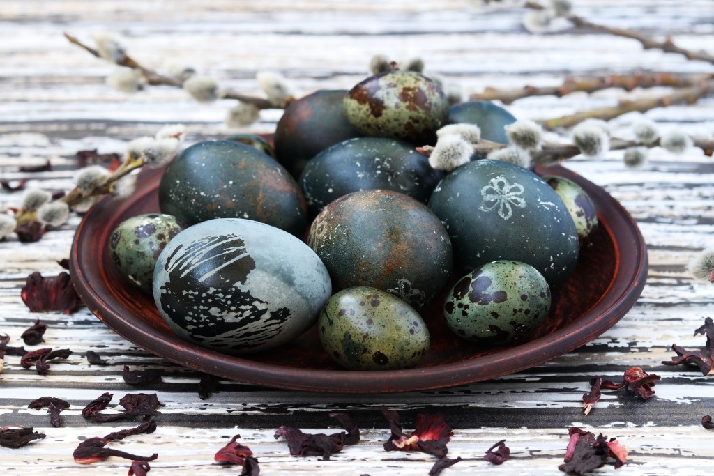 Окрашенные яйца подавать на пасхальный стол. Покраска чаем каркаде - это натуральный способ ярко и необычно украсить яйца на Пасху!