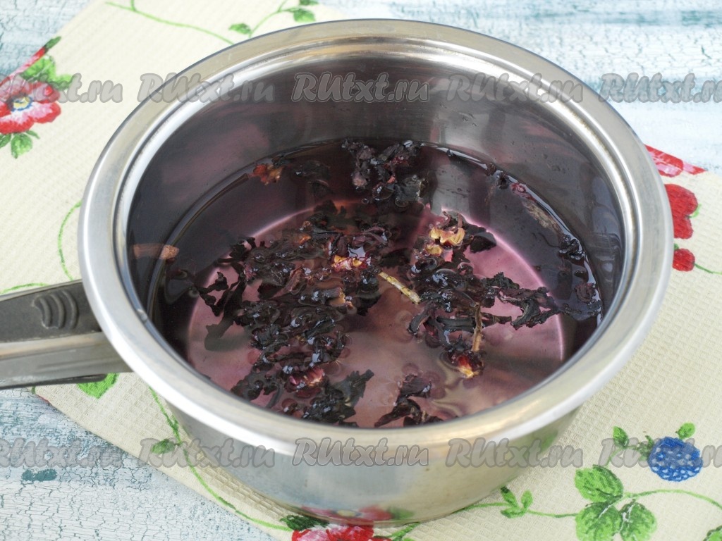 Лепестки каркаде насыпать в сотейник и залить водой.