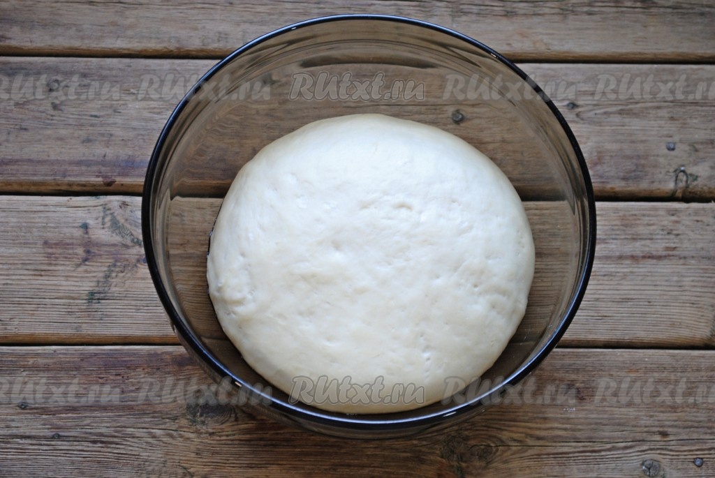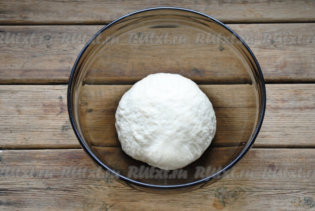 Замесить не липнущее к рукам, мягкое тесто. В миску, смазанную растительным маслом, поместить тесто и, накрыв его полотенцем, поставить в тёплое место на 1 час.