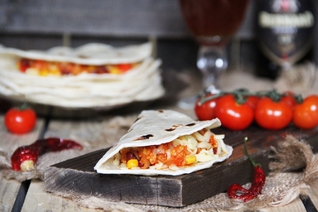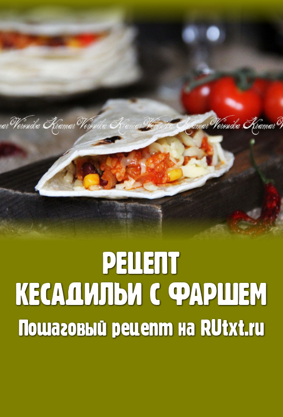 Кесадилья - это мексиканский бутерброд из тонких лепёшек, приготовленных на сковороде, и сочной начинки из фарша и овощей. Конечно, можно приготовить острую кесадилью с жгучим перцем, но я готовила кесадилью для всей семьи, в том числе и для детей, поэтому воздержалась от добавления перца. С начинкой можно экспериментировать, я делюсь своим рецептом. Кесадилья с фаршем получается сытной и очень вкусной, обязательно попробуйте!