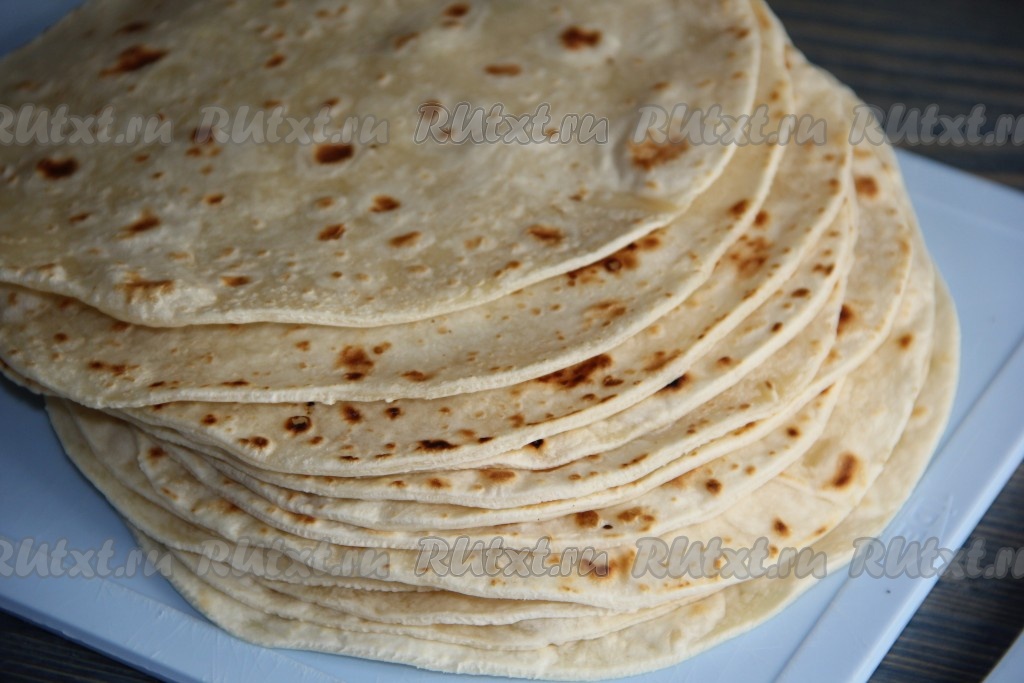 Аналогично раскатать и испечь оставшиеся лепёшки. Готовые лепёшки складывать стопочкой и накрыть полотенцем. Из этого количества теста получается 12-13 лепёшек.