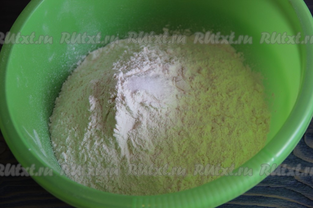 Для приготовления лепёшек просеять муку в глубокую миску, добавить соль и соду.